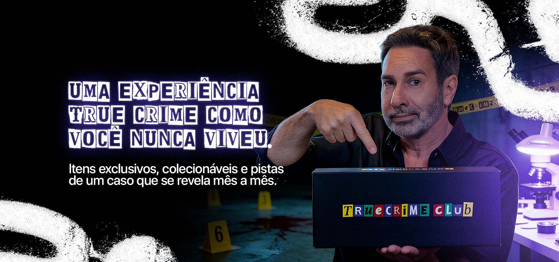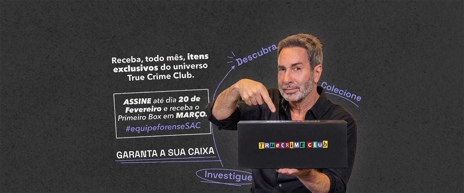 Eleve seu nível de conteúdo com o primeiro Clube de True Crime do Brasil. Imagine receber mensalmente uma caixa temática, recheada de surpresas que você não encontra em nenhum outro lugar. Nossa missão é entregar uma experiência completa: da abertura da caixa ao design impecável de cada item colecionável. Unimos o que há de melhor em qualidade e conteúdo para quem busca profundidade e exclusividade no universo true crime.